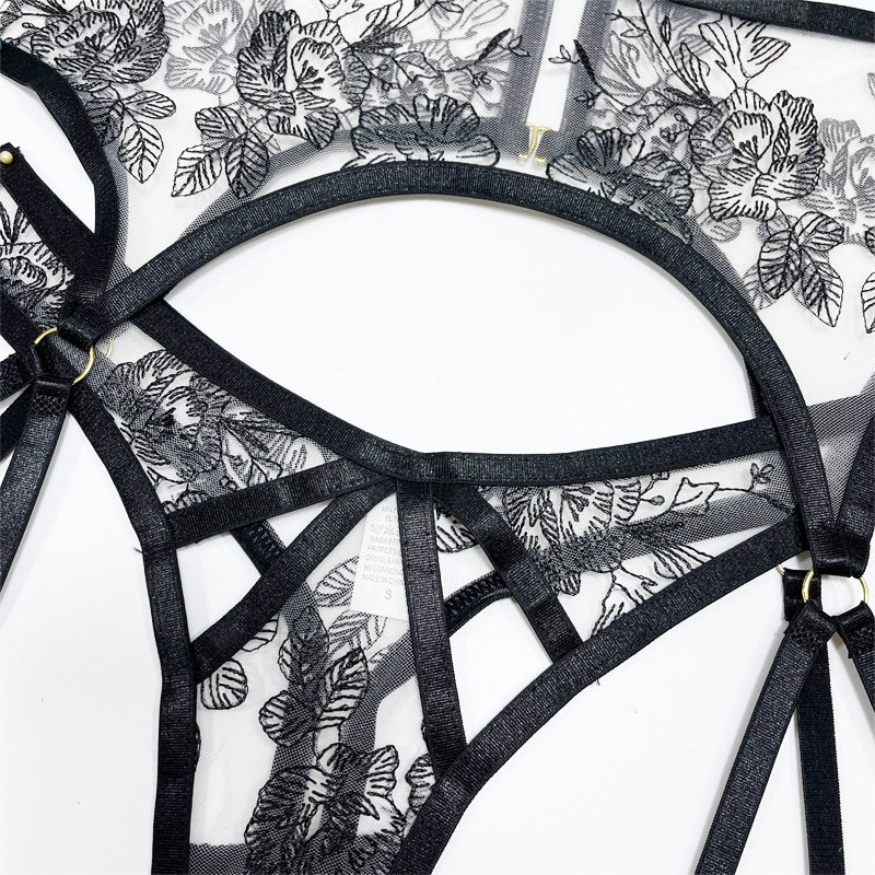 Conjunto de 3 piezas, sujetador, braga y liguero